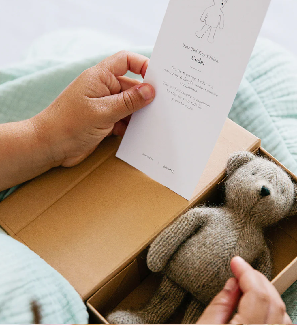 Each Tiny Ted comes with a little personality card & in a matching gift box