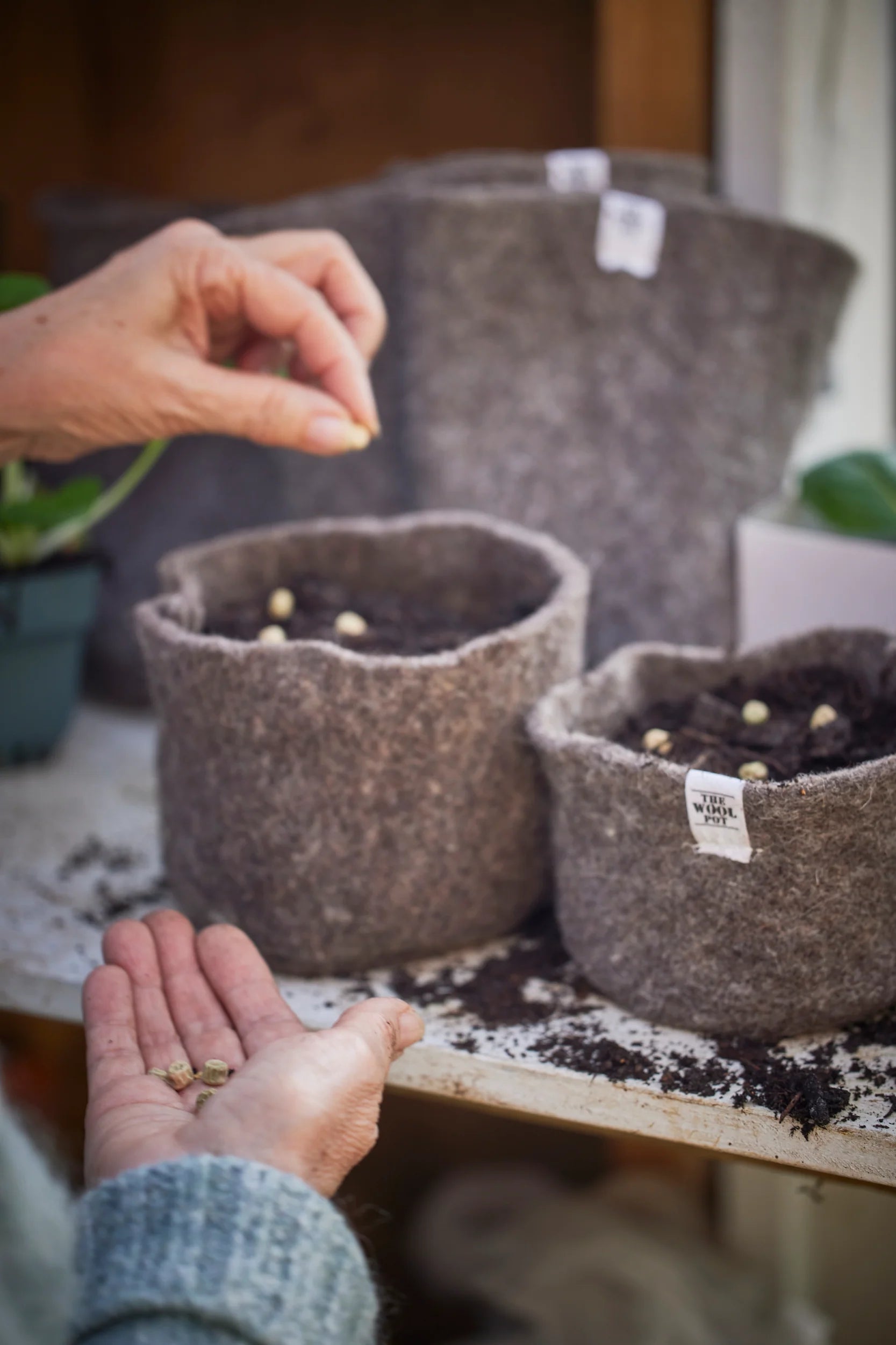 The Wool Pot is an eco-friendly, biodegradable planting solution designed to make gardening easier and more sustainable. Made from 100% natural wool, these pots reduce transplant shock by allowing roots to grow through the pot walls, so you can plant them directly into the ground without disturbing the roots. With excellent water retention, The Wool Pot helps keep your plants hydrated for longer, reducing the need for frequent watering. Ideal for growing small to medium-sized vegetable, herb, and flower seedlings, these pots offer a seamless and earth-friendly gardening experience.