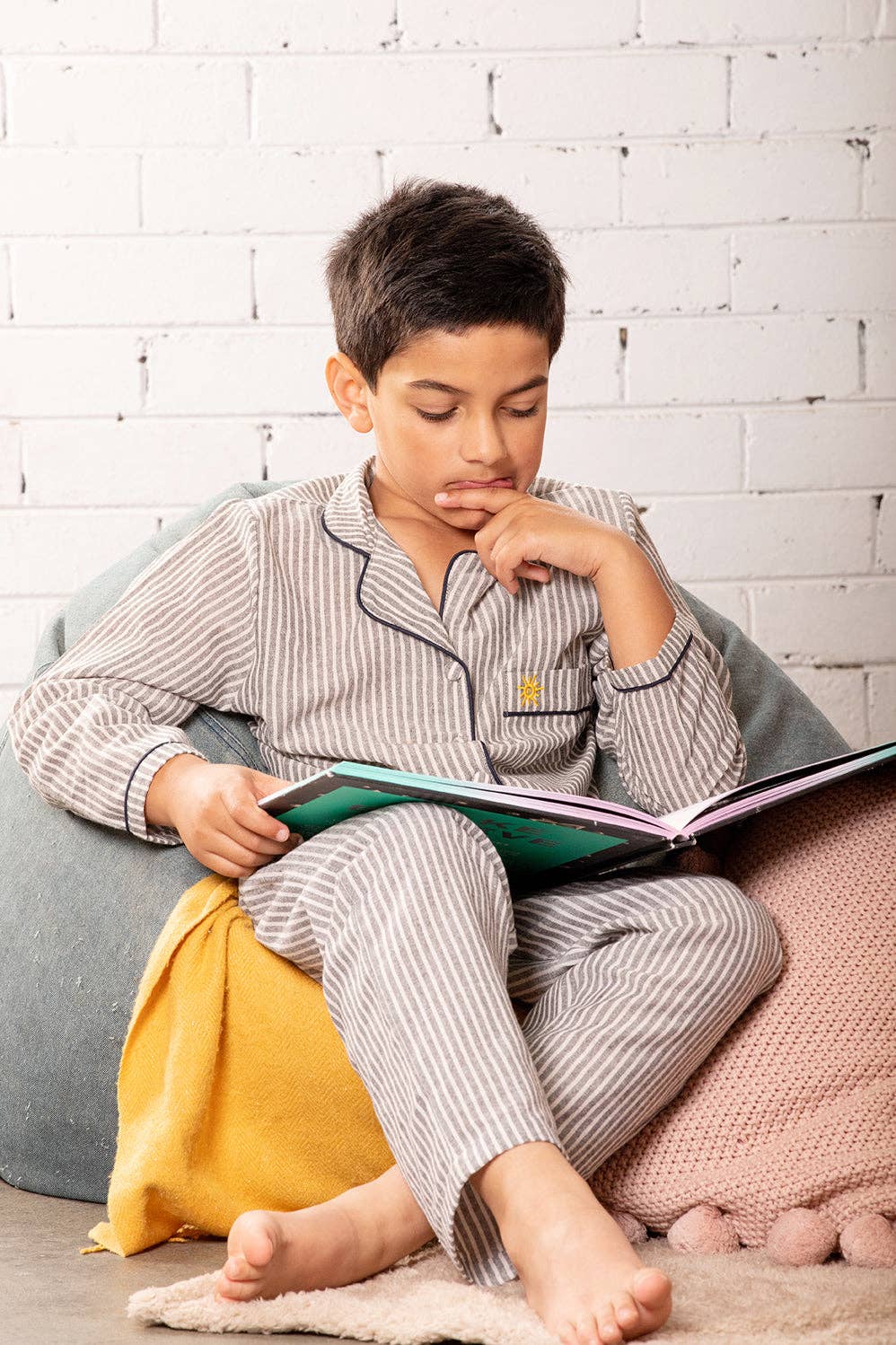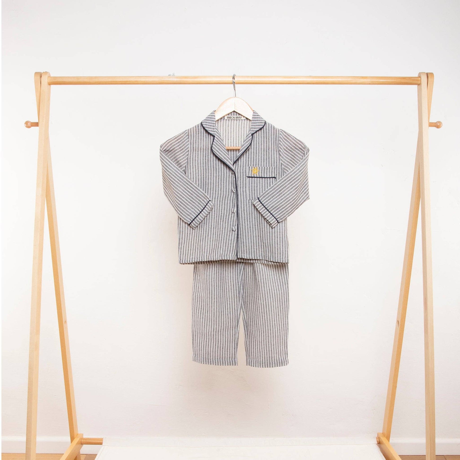 Spencer Classic Handmade Black and White Linen Striped Kids Pyjama Set
